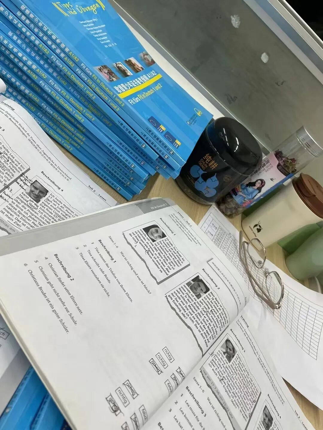 同学们考前积极备考,不仅在课上认真听讲、做笔记,也会积极利用课后的时间向老师请教,对于重要的知识点也能在老师的带领下举一反三,主动地进行温故知新。面对一开始十分陌生的口语题型,也能大胆开口,努力组织回答,摆脱“哑巴德语“。此次考试充分展现了我校学生优异的德语语言能力和积极向上的精神风貌!